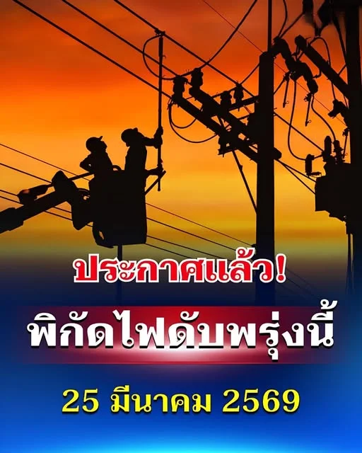 ประกาศเเล้ว! พิกัดไฟดับพรุ่งนี้ 25 มีนาคม 2569 บางพื้นที่ในเขต กทม.-นนทบุรี-สมุทรปราการ