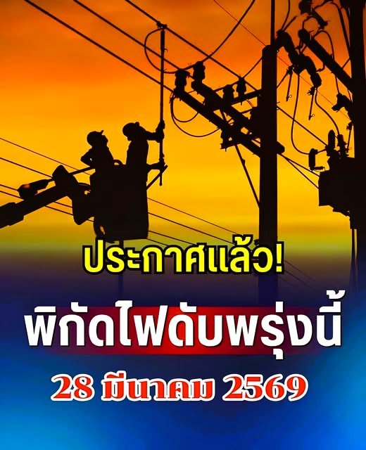 การไฟฟ้านครหลวง (กฟน.) ประกาศเรื่อง มีความจำเป็นต้อง “ดับไฟ” ในพื้นที่กรุงเทพมหานคร สมุทรปราการ และนนทบุรี ในวันเสาร์ที่ 28 มีนาคม 2569 เพื่อพัฒนาหรือบำรุงรักษาระบบการจ่ายกระแสไฟฟ้าให้มีประสิทธิภาพยิ่งขึ้น