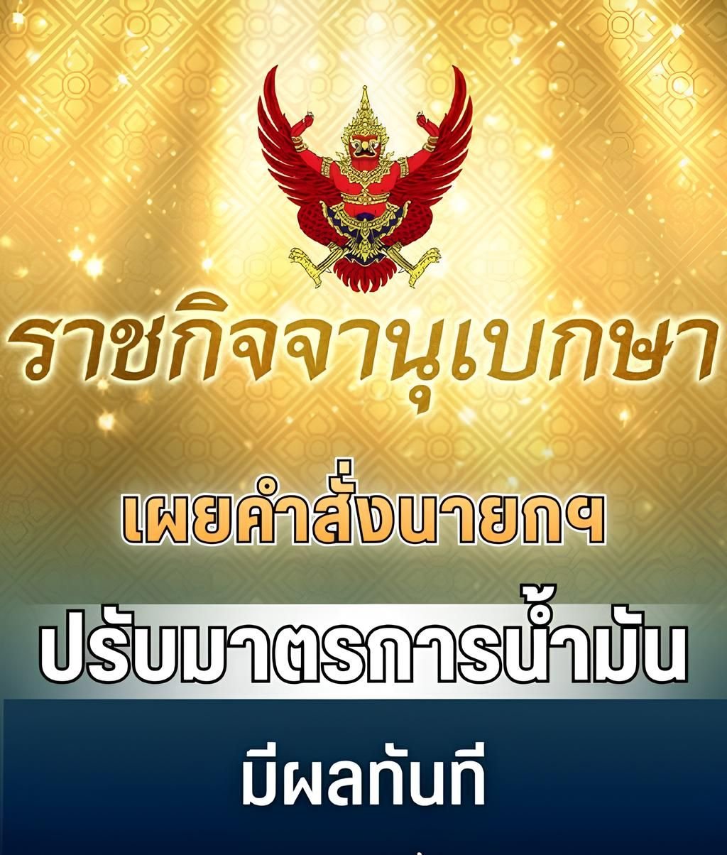 วันที่ 22 มีนาคม 2569 ราชกิจจานุเบกษาเผยแพร่คำสั่งนายกรัฐมนตรี ที่ 4/2569 เรื่อง กำหนดมาตรการเพื่อแก้ไขและป้องกันภาวะการขาดแคลนน้ำมันเชื้อเพลิง