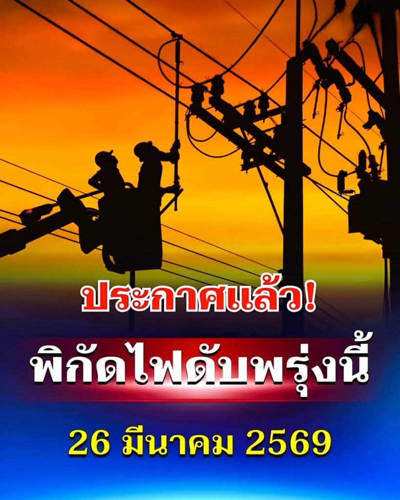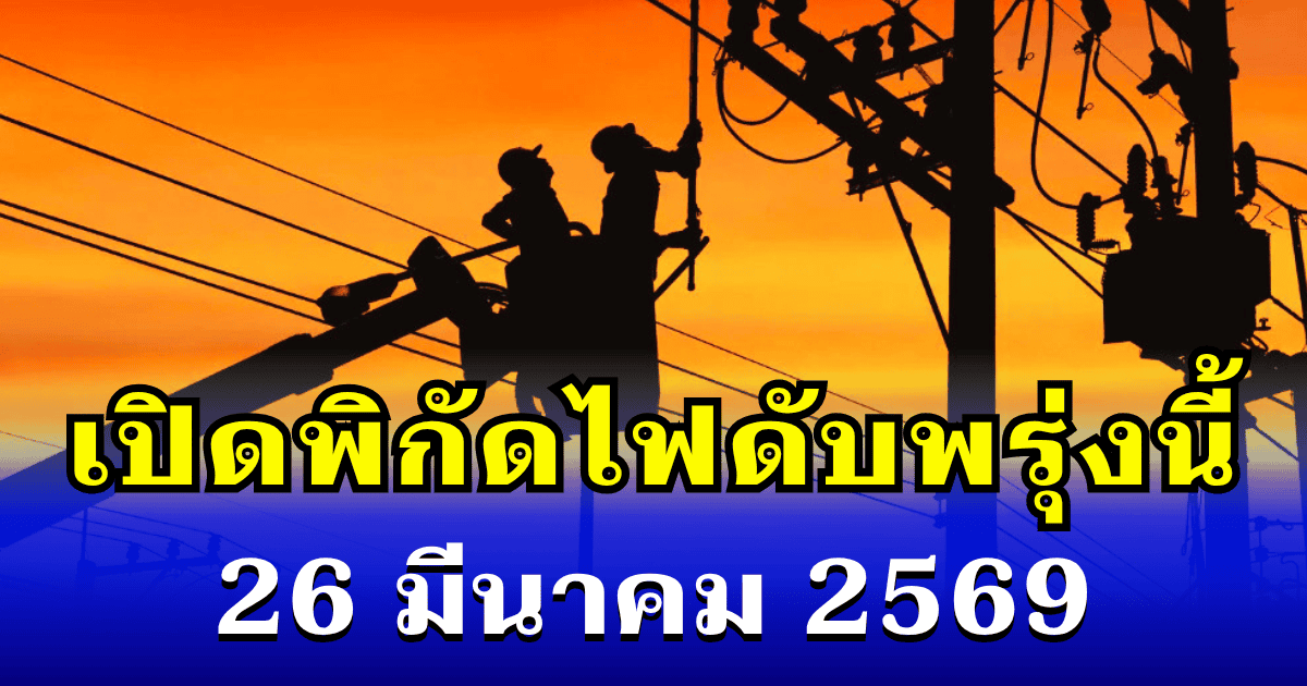 ประกาศเเล้ว! พิกัดไฟดับพรุ่งนี้ 26 มีนาคม 2569 บางพื้นที่ในเขต กทม.-สมุทรปราการ