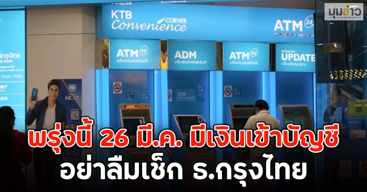 พรุ่งนี้ 26 มี.ค. มีเงินเข้าบัญชี อย่าลืมเช็ก ธ.กรุงไทย