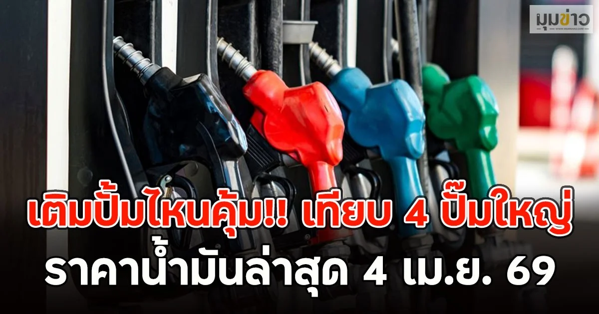 เติมปั้มไหนคุ้ม!! เทียบ 4 ปั๊มใหญ่ ราคาน้ำมันล่าสุด 4 เม.ย. 69
